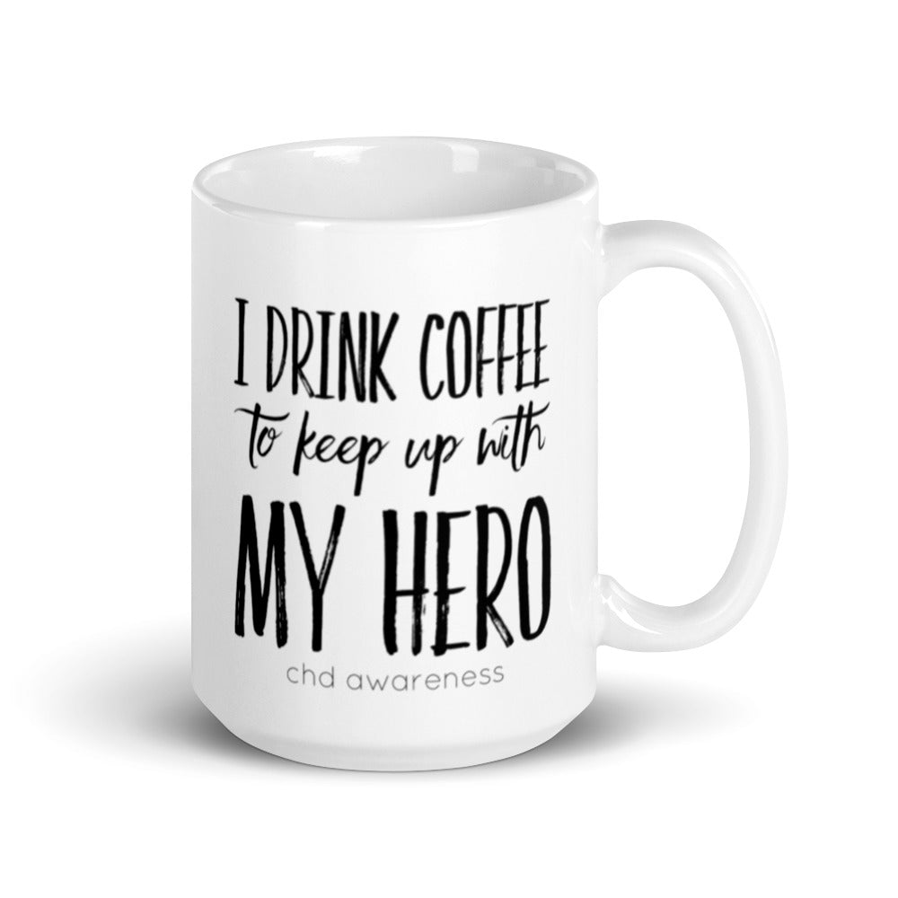Coffee to Keep Up with My Heart Hero - White glossy mug